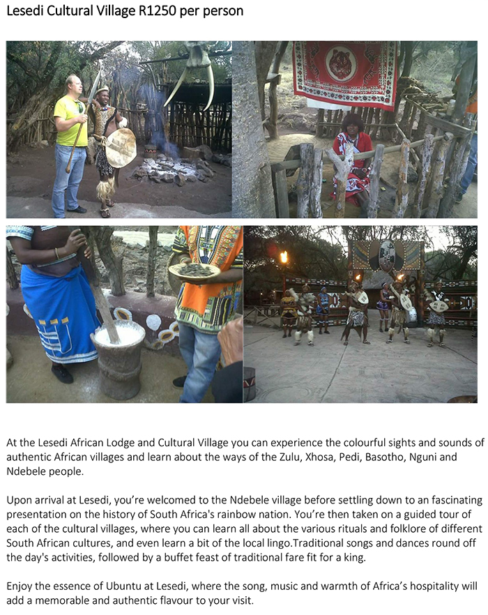 Pre and Post Conference ToursPlease vissit our website for a wide range of pre and post conference tours https://www.ubuhletours.com/index.php .5e |